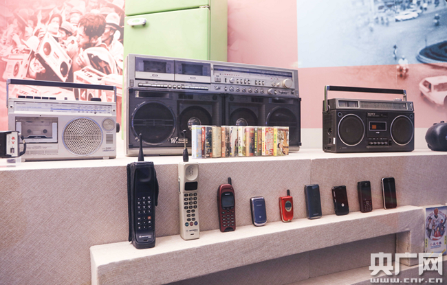 圖為館內(nèi)展示的收音機(jī)、磁帶及手機(jī)。(央廣網(wǎng)記者 荊宇琦 攝)