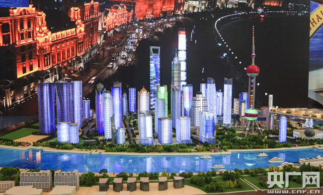 圖為上海浦東新區(qū)城市模型。(央廣網(wǎng)記者 荊宇琦 攝)