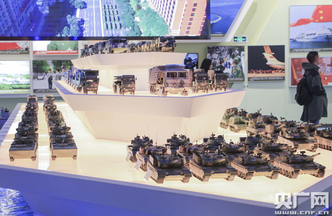 圖為各類軍事裝備模型。(央廣網(wǎng)記者 荊宇琦 攝)