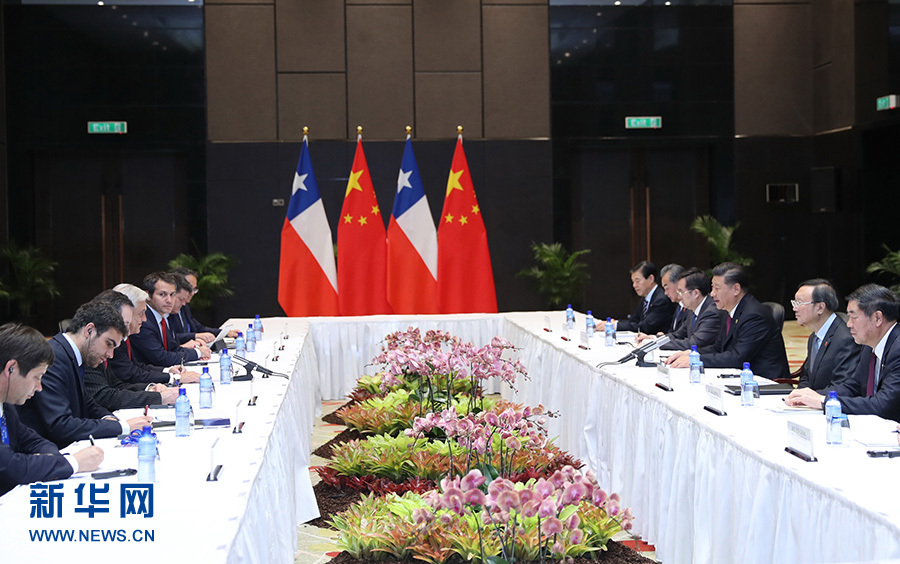 習(xí)近平強(qiáng)調(diào),中智已經(jīng)簽署“一帶一路”政府間合作協(xié)議,下一步要確定重點(diǎn)領(lǐng)域和項(xiàng)目,爭取實(shí)現(xiàn)早期收獲。要充分發(fā)揮雙邊合作機(jī)制作用。要以中智自由貿(mào)易協(xié)定升級為契機(jī),推動(dòng)擴(kuò)大雙邊貿(mào)易規(guī)模,優(yōu)化貿(mào)易結(jié)構(gòu),深化投資合作,扎實(shí)推進(jìn)重大互聯(lián)互通項(xiàng)目。2020年中智將迎來建交50周年,雙方要共同辦好一系列慶?;顒?dòng)。中方愿同智方加強(qiáng)科技、南極等領(lǐng)域合作。中方支持智利明年主辦亞太經(jīng)合組織領(lǐng)導(dǎo)人非正式會(huì)議,共同推進(jìn)亞太自由貿(mào)易區(qū)建設(shè)。