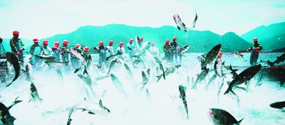 企業(yè)與地方聯(lián)合發(fā)展生態(tài)綠色經(jīng)濟(jì),在千島湖創(chuàng)新發(fā)展“保水漁業(yè)”,使當(dāng)?shù)氐木G水青山變成了金山銀山。圖為千島湖巨網(wǎng)捕魚的壯觀景象。(資料圖片)