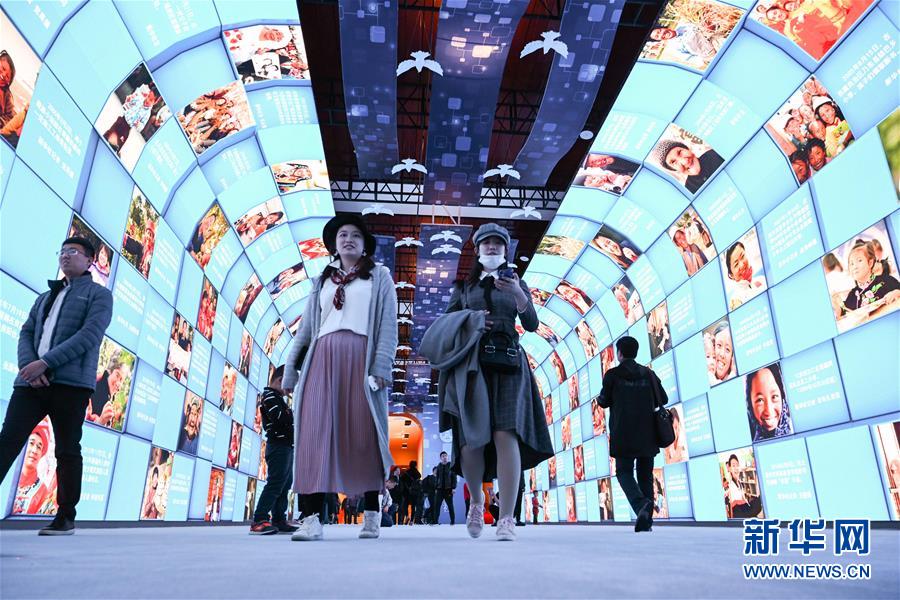 11月17日,觀眾在展覽上參觀“大美中國”影像長廊。新華社記者 陳曄華 攝