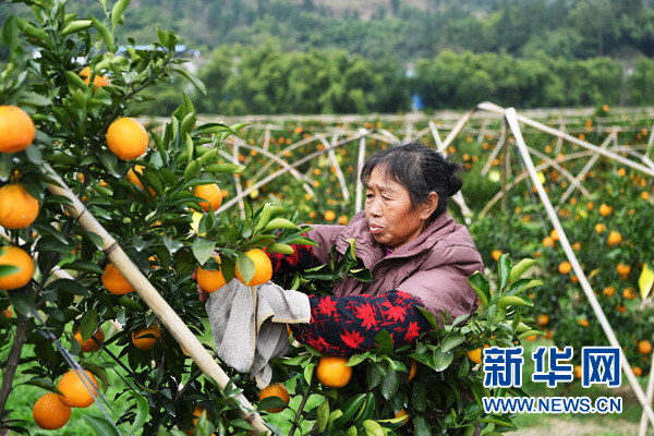 村民在位于重慶市大足區(qū)中敖鎮(zhèn)加福村的“最憶小橘”種植園內(nèi)勞作(11月20日攝)。 新華社記者王全超攝