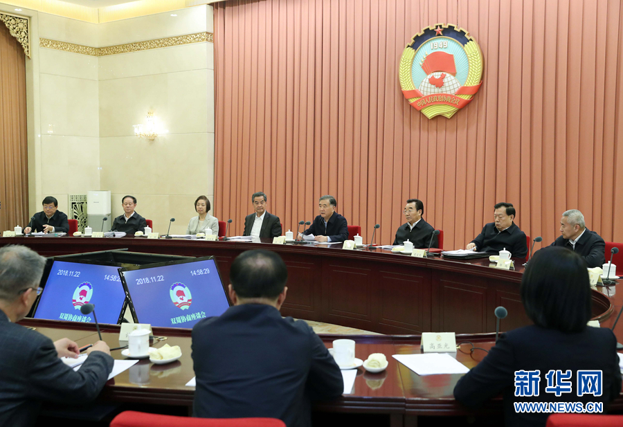 11月22日,十三屆全國(guó)政協(xié)第十五次雙周協(xié)商座談會(huì)在北京召開,圍繞“妥善解決特色小鎮(zhèn)建設(shè)中存在的問題”建言資政。中共中央政治局常委、全國(guó)政協(xié)主席汪洋主持會(huì)議并講話。 新華社記者劉衛(wèi)兵攝