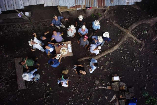 在科潘遺址的考古發(fā)掘間隙,中國考古學家和當?shù)乜脊殴ぷ髡咴诹珠g空地歡聚小憩。(中國社科院考古所供圖)