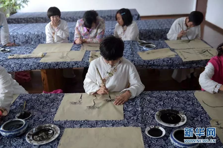 在山東曲阜彬彬有禮學(xué)校,孩子們練習(xí)繪畫。