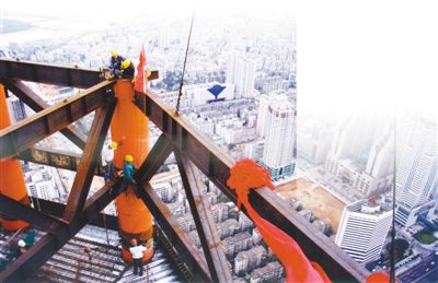 賽格廣場(chǎng)鋼結(jié)構(gòu)封頂。邵寶奎攝