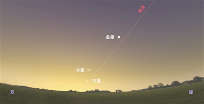 12月15日黎明時(shí)分東南方低空中幾顆行星的位置示意圖
