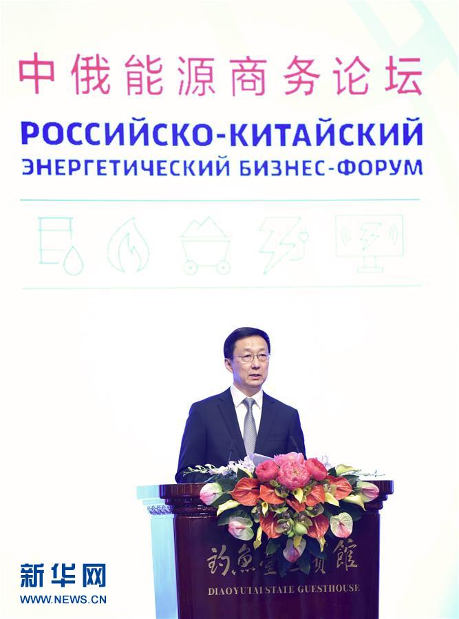 11月29日,中俄能源商務論壇在北京釣魚臺國賓館開幕。中共中央政治局常委、國務院副總理韓正出席開幕式,宣讀習近平主席賀信并致辭。 新華社記者 殷博古 攝