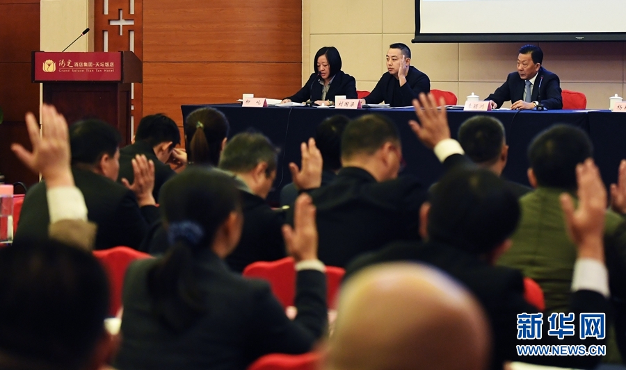 12月1日,劉國梁(后排中)和與會代表在換屆投票環(huán)節(jié)舉手表決。 新華社記者陶希夷攝