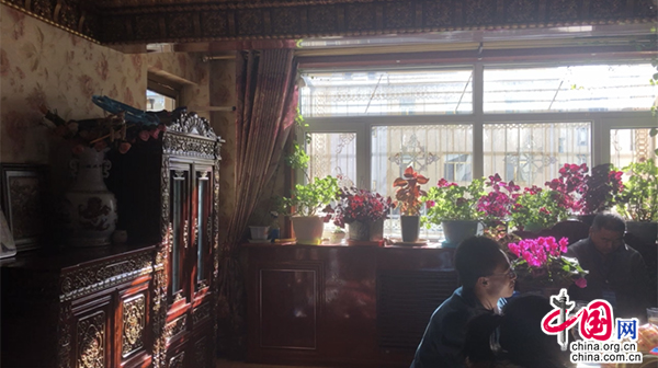 尕瑪文索的新家在統(tǒng)建區(qū)的一棟居民樓內(nèi),房間里擺滿了藏族特色的家具和裝飾品,各種花朵盆栽占據(jù)了整個陽臺?!靶路孔拥亩旌拖奶煲粯优?,花可以繼續(xù)長,什么植物都可以養(yǎng)?!薄芭汀背闪随噩斘乃鲗π路孔幼畲蟮挠∠蟆?/p>