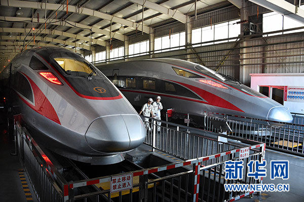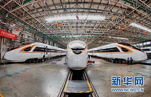 走進(jìn)中車(chē)四方股份公司交車(chē)線,一列列嶄新的高速動(dòng)車(chē)組如同巨龍般整齊排列,蓄勢(shì)待發(fā)。這里跑出了中國(guó)高鐵的多個(gè)第一——