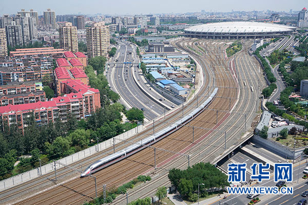 2017年6月26日,中國(guó)標(biāo)準(zhǔn)動(dòng)車(chē)組“復(fù)興號(hào)”G123次列車(chē)從北京南站首發(fā)。新華社記者 邢廣利 攝