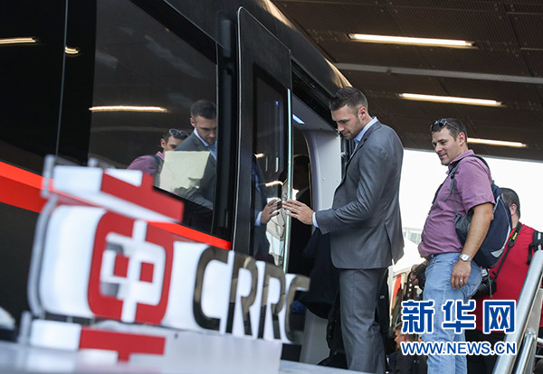 在德國(guó)首都柏林,人們參觀中國(guó)中車(chē)的新一代碳纖維地鐵列車(chē)(2018年9月18日攝)。新華社記者 單宇琦 攝