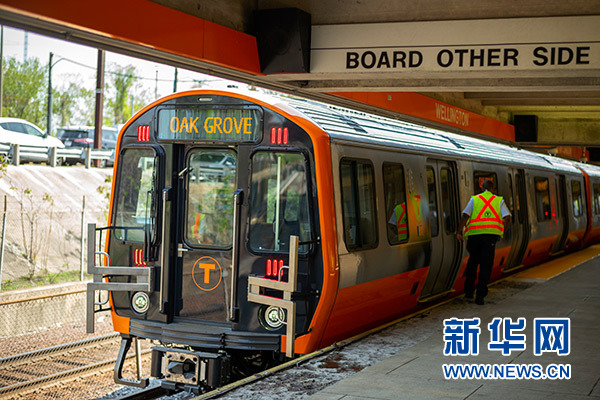 2018年5月15日在美國(guó)馬薩諸塞州梅德福德惠靈頓站拍攝的中車(chē)長(zhǎng)客為波士頓橙線地鐵“量身訂制”的首批車(chē)輛。新華社記者 李木子 攝