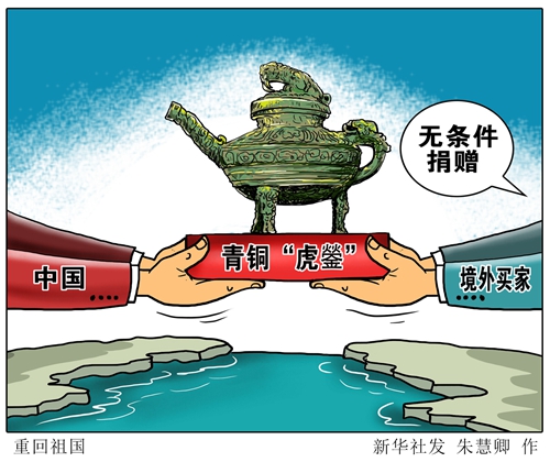 曾在英國被拍賣的圓明園文物青銅“虎鎣”近日重回祖國懷抱。11日,這件流失海外百余年的文物正式入藏中國國家博物館。青銅“虎鎣”為西周晚期文物,頂蓋內(nèi)鑄有“自作供鎣”銘文,因其精美獨特的造型、罕見的虎形裝飾而具有重要的歷史、藝術(shù)和文化價值。(記者 施雨岑、王鵬)