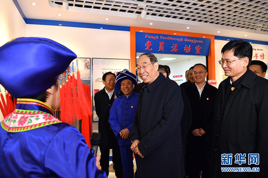 在港北區(qū)港城街道龍井村,尤權考察了村委辦公樓、便民服務大廳、壯族文化展館,聽取民族團結進步創(chuàng)建等情況介紹,與少數(shù)民族群眾親切交談,祝愿他們日子一天比一天好,生活越來越幸福。