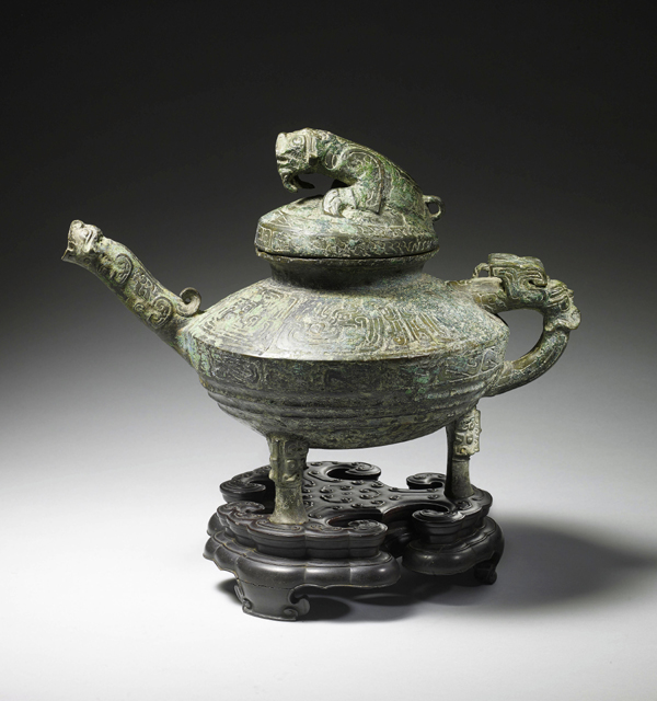 青銅“虎鎣”為西周晚期文物,頂蓋內(nèi)鑄有“自作供鎣”銘文,因其精美獨(dú)特的造型、罕見(jiàn)的虎形裝飾而具有重要的歷史、藝術(shù)和文化價(jià)值。資料顯示,青銅“虎鎣”原為清宮皇室舊藏,1860年被英國(guó)軍官哈利·埃文斯從圓明園劫掠獲得,此后一直由其家族收藏。