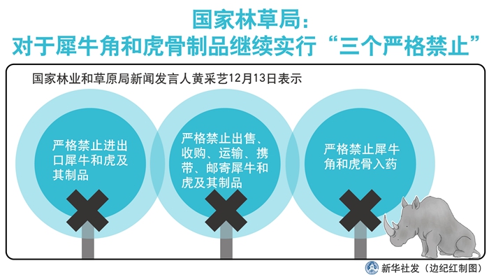 國家林草局:對(duì)于犀牛角和虎骨制品繼續(xù)實(shí)行“三個(gè)嚴(yán)格禁止” 新華社發(fā) 邊紀(jì)紅 制圖