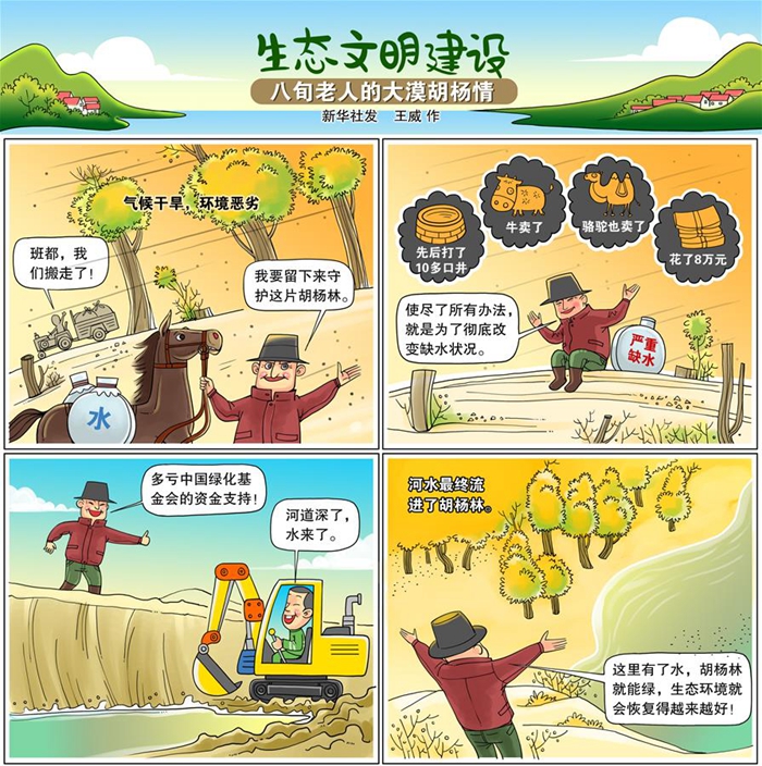 班都老人先后賣掉了8頭牛、3匹駱駝,打了10多口井,花了8萬多元疏通被風沙掩埋的河道……引水、蓄水,他使盡所有,只為徹底改變缺水狀況。