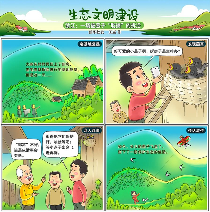 小燕子順利長大了,也能飛了,竹源鄉(xiāng)干部再三確認燕子已經(jīng)離開燕窩后,才拆除老宅。大嶺頭村的最后一幢危房,隨著綿長的梅雨季一起“結束”。