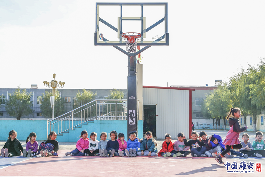這是雄縣一所小學新建的籃球場,孩子們正在上體育課。據(jù)了解,籃球場上的設施是按照NBA的標準修建的。郭家豪 攝
