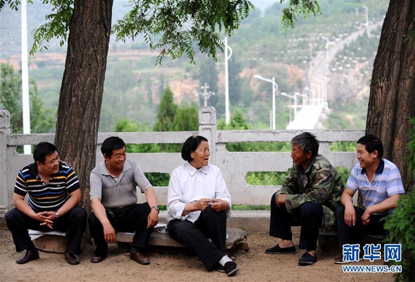 申紀(jì)蘭(中)在山西省平順縣西溝村和村民交流(2011年6月13日攝)。新華社記者 燕雁 攝