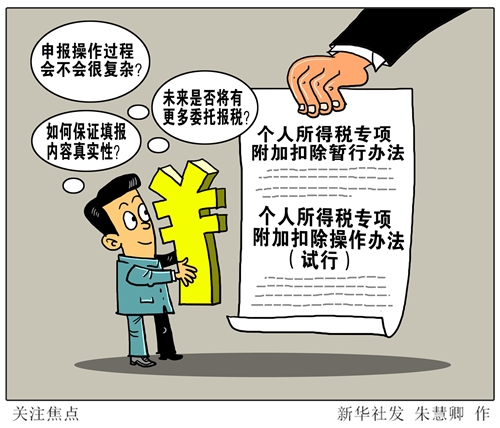 日前,《個(gè)人所得稅專項(xiàng)附加扣除暫行辦法》和《個(gè)人所得稅專項(xiàng)附加扣除操作辦法(試行)》正式公布。面對(duì)這項(xiàng)即將實(shí)施的惠民政策,很多人關(guān)心:申報(bào)操作過程是否會(huì)很復(fù)雜?如何保證信息真實(shí)性?委托報(bào)稅可否實(shí)現(xiàn)?“新華視點(diǎn)”記者采訪了權(quán)威人士、專家以及多地基層稅務(wù)人員,回應(yīng)民生關(guān)切。