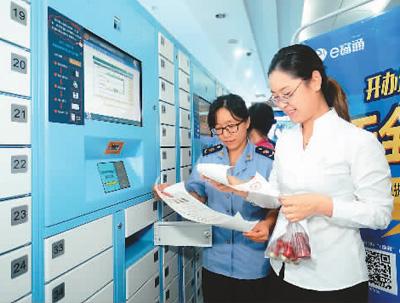 一名申請(qǐng)開辦企業(yè)者在北京市通州區(qū)政務(wù)服務(wù)中心通過“刷臉”領(lǐng)取營(yíng)業(yè)執(zhí)照。記者 賀勇 攝