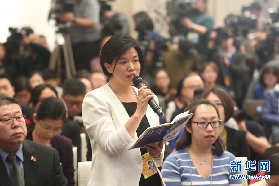 全國政協(xié)十三屆一次會議新聞發(fā)布會3月2日16:30在人民大會堂一層新聞發(fā)布廳召開,大會新聞發(fā)言人王國慶向中外媒體介紹本次大會有關(guān)情況并回答記者提問。圖為經(jīng)濟日報記者提問。新華網(wǎng)/中國政府網(wǎng) 曲植 攝?