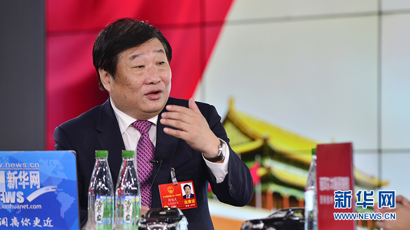 3月5日,全國(guó)人大代表、山東重工集團(tuán)董事長(zhǎng)、濰柴集團(tuán)董事長(zhǎng)譚旭光做客新華網(wǎng)2018全國(guó)兩會(huì)特別訪談。新華網(wǎng) 李相博攝