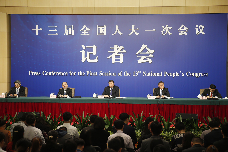 十三屆全國(guó)人大一次會(huì)議新聞中心3月6日上午10時(shí)在梅地亞中心多功能廳舉行記者會(huì),邀請(qǐng)國(guó)家發(fā)展和改革委員會(huì)主任何立峰、副主任張勇、副主任寧吉喆就“創(chuàng)新和完善宏觀調(diào)控,推動(dòng)高質(zhì)量發(fā)展”相關(guān)問題回答中外記者提問。圖為記者會(huì)現(xiàn)場(chǎng)。 新華網(wǎng)/中國(guó)政府網(wǎng) 陳杰 攝