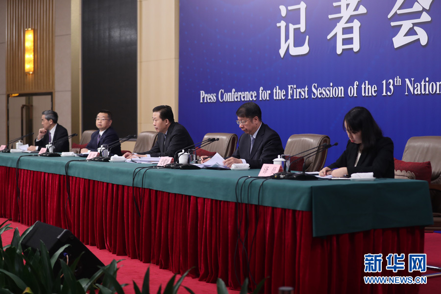 十三屆全國人大一次會(huì)議新聞中心于3月7日上午在梅地亞中心多功能廳舉行記者會(huì),邀請財(cái)政部部長肖捷,副部長史耀斌、胡靜林就“財(cái)稅改革和財(cái)政工作”相關(guān)問題回答中外記者提問。圖為記者會(huì)現(xiàn)場。新華網(wǎng)/中國政府網(wǎng)?陳杰 攝
