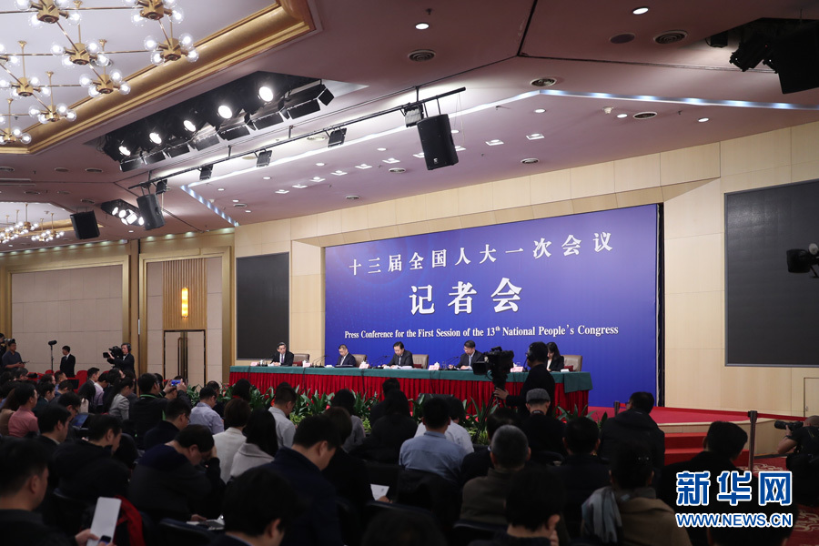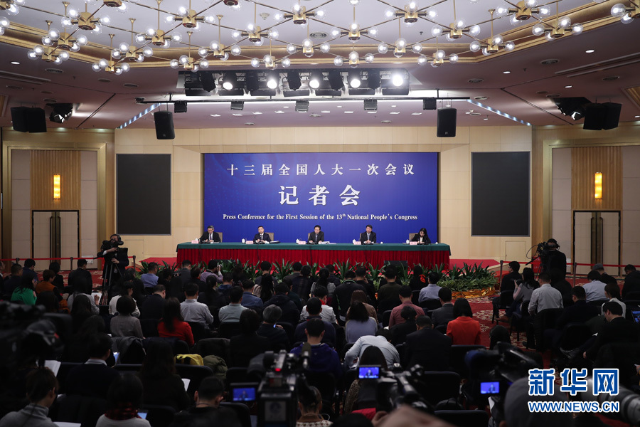 十三屆全國人大一次會議新聞中心于3月7日上午在梅地亞中心多功能廳舉行記者會,邀請財政部部長肖捷,副部長史耀斌、胡靜林就“財稅改革和財政工作”相關(guān)問題回答中外記者提問。圖為記者會現(xiàn)場。新華網(wǎng)/中國政府網(wǎng)?陳杰 攝