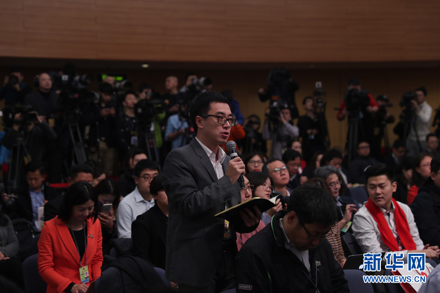 十三屆全國人大一次會議新聞中心于3月7日上午在梅地亞中心多功能廳舉行記者會,邀請財政部部長肖捷,副部長史耀斌、胡靜林就“財稅改革和財政工作”相關問題回答中外記者提問。圖為人民日報記者提問。新華網(wǎng)/中國政府網(wǎng) 陳杰攝