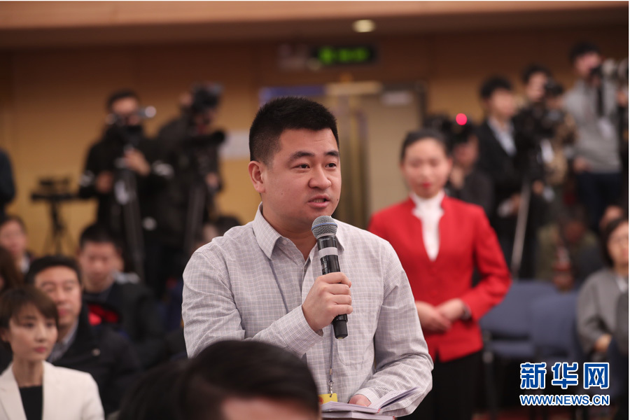 十三屆全國(guó)人大一次會(huì)議新聞中心于3月7日上午在梅地亞中心多功能廳舉行記者會(huì),邀請(qǐng)財(cái)政部部長(zhǎng)肖捷,副部長(zhǎng)史耀斌、胡靜林就“財(cái)稅改革和財(cái)政工作”相關(guān)問(wèn)題回答中外記者提問(wèn)。圖為每日經(jīng)濟(jì)新聞?dòng)浾咛釂?wèn)。新華網(wǎng)/中國(guó)政府網(wǎng) 陳杰 攝