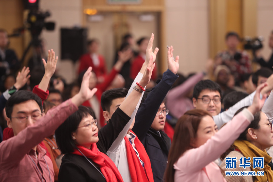 十三屆全國人大一次會議新聞中心于3月7日在梅地亞中心多功能廳舉行記者會,邀請農(nóng)業(yè)部部長韓長賦,農(nóng)業(yè)部新聞發(fā)言人、辦公廳主任潘顯政就“實施鄉(xiāng)村振興戰(zhàn)略 推動農(nóng)業(yè)轉(zhuǎn)型升級”的相關(guān)問題回答中外記者的提問。圖為現(xiàn)場記者舉手提問。新華網(wǎng)/中國政府網(wǎng) 陳杰 攝