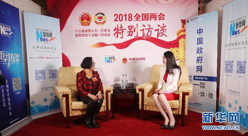3月5日,全國人大代表、河北蔚縣周淑英剪紙藝術(shù)館館長周淑英到設(shè)在人民大會堂的新華網(wǎng)兩會特別訪談演播廳接受專訪。新華網(wǎng) 王翰林 攝