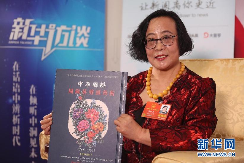全國人大代表、河北蔚縣周淑英剪紙藝術(shù)館館長(zhǎng)周淑英。新華網(wǎng) 王翰林 攝