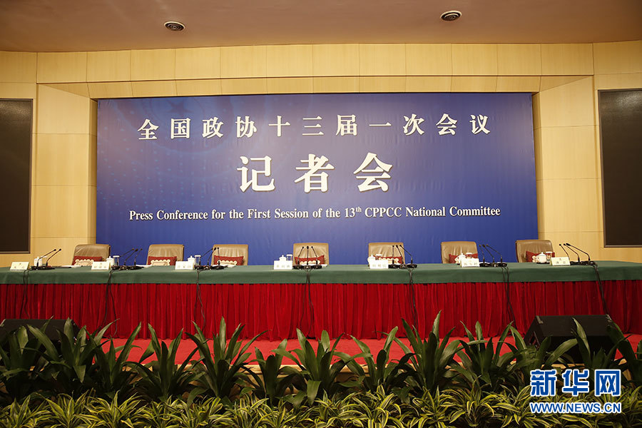 3月10日8時(shí)45分,全國(guó)政協(xié)十三屆一次會(huì)議將在梅地亞中心多功能廳舉行記者會(huì),邀請(qǐng)5位全國(guó)政協(xié)委員就“提高保障和改善民生水平”回答記者提問(wèn)。圖為記者會(huì)現(xiàn)場(chǎng)。新華網(wǎng)/中國(guó)政府網(wǎng) 陳杰 攝