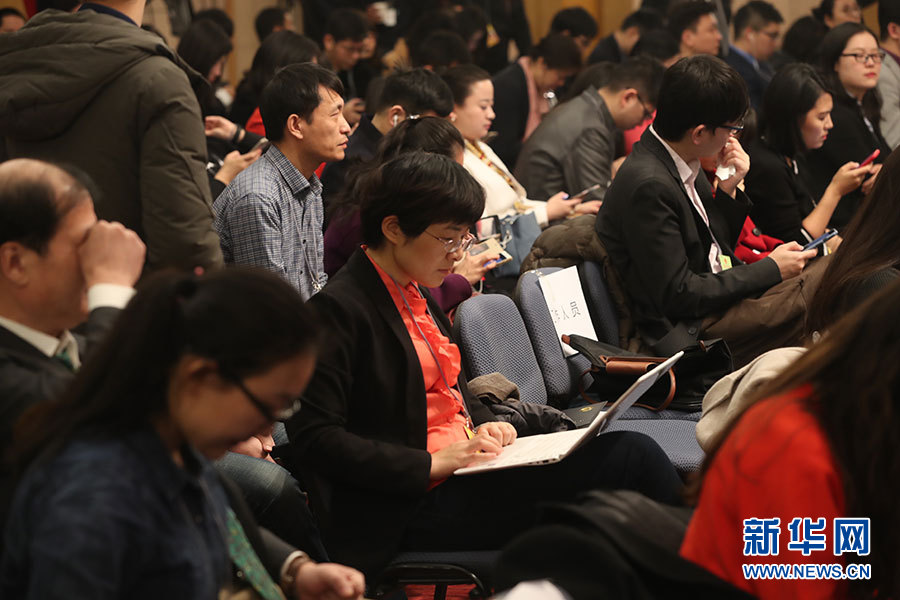 3月10日8時(shí)45分,全國政協(xié)十三屆一次會(huì)議將在梅地亞中心多功能廳舉行記者會(huì),邀請5位全國政協(xié)委員就“提高保障和改善民生水平”回答記者提問。圖為記者在現(xiàn)場采訪。新華網(wǎng)/中國政府網(wǎng) 陳杰 攝