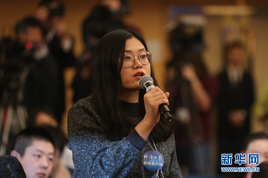 十三屆全國(guó)人大一次會(huì)議新聞中心3月11日10時(shí)在梅地亞中心多功能廳舉行記者會(huì),邀請(qǐng)商務(wù)部部長(zhǎng)鐘山、副部長(zhǎng)兼國(guó)際貿(mào)易談判副代表王受文、副部長(zhǎng)錢(qián)克明就“推動(dòng)形成全面開(kāi)放新格局 推動(dòng)商務(wù)事業(yè)高質(zhì)量發(fā)展”相關(guān)問(wèn)題回答中外記者提問(wèn)。圖為經(jīng)濟(jì)日?qǐng)?bào)記者提問(wèn)。新華網(wǎng)/中國(guó)政府網(wǎng)?曲植 攝??