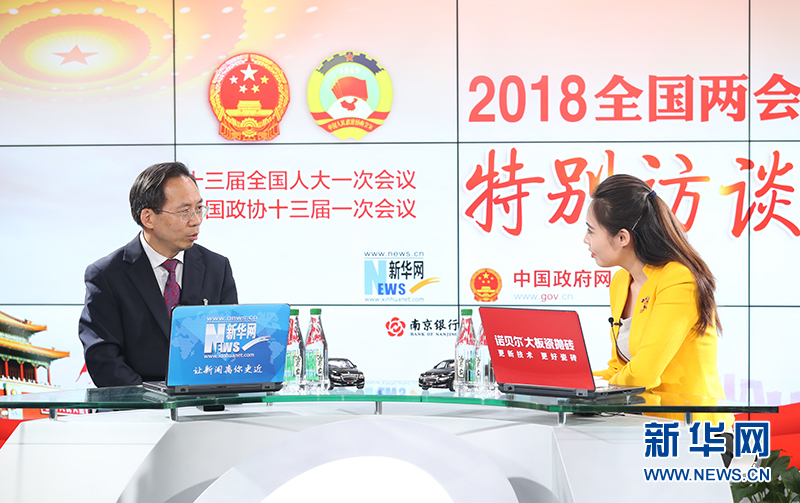 圖為全國政協(xié)委員、中國財政科學(xué)研究院院長劉尚希(左)做客新華網(wǎng)2018全國兩會特別訪談。新華網(wǎng) 郭小天攝