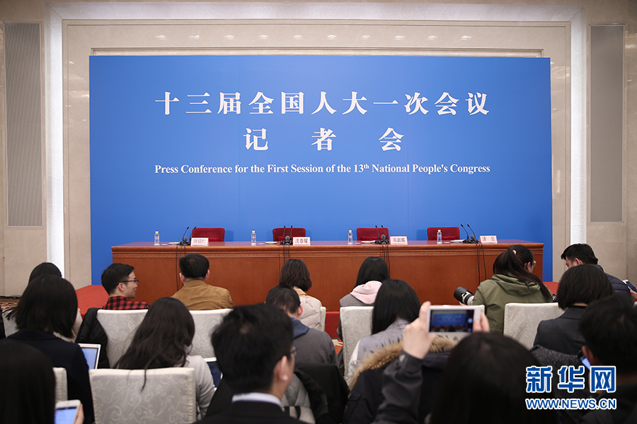 3月11日,十三屆全國(guó)人大一次會(huì)議新聞中心在人民大會(huì)堂一樓新聞發(fā)布廳舉行記者會(huì),邀請(qǐng)十三屆全國(guó)人大一次會(huì)議秘書處法案組組長(zhǎng)、全國(guó)人大常委會(huì)法工委主任沈春耀,法案組副組長(zhǎng)、全國(guó)人大常委會(huì)法工委副主任鄭淑娜就“憲法修正案”相關(guān)問題回答中外記者提問。圖為記者會(huì)開始前。新華網(wǎng)/中國(guó)政府網(wǎng) 陳杰 攝