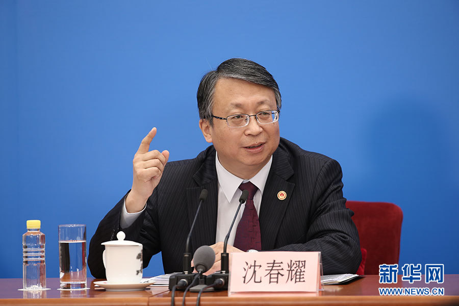 3月11日,十三屆全國(guó)人大一次會(huì)議新聞中心在人民大會(huì)堂一樓新聞發(fā)布廳舉行記者會(huì),邀請(qǐng)十三屆全國(guó)人大一次會(huì)議秘書處法案組組長(zhǎng)、全國(guó)人大常委會(huì)法工委主任沈春耀,法案組副組長(zhǎng)、全國(guó)人大常委會(huì)法工委副主任鄭淑娜就“憲法修正案”相關(guān)問題回答中外記者提問。圖為沈春耀回答記者提問。新華網(wǎng)/中國(guó)政府網(wǎng) 翟子赫 攝