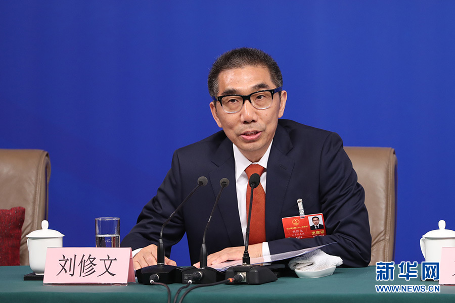 十三屆全國人大一次會(huì)議新聞中心于3月12日15時(shí)在梅地亞中心多功能廳舉行記者會(huì),邀請十二屆全國人大財(cái)經(jīng)委副主任委員尹中卿、教科文衛(wèi)委副主任委員吳恒、環(huán)資委副主任委員袁駟、內(nèi)司委委員鄭功成,全國人大常委會(huì)預(yù)算工委副主任劉修文、常委會(huì)辦公廳秘書局巡視員傅文杰就“人大監(jiān)督工作”相關(guān)問題回答中外記者提問。圖為全國人大常委會(huì)預(yù)算工委副主任劉修文回答記者提問。新華網(wǎng)/中國政府網(wǎng) 陳杰 攝