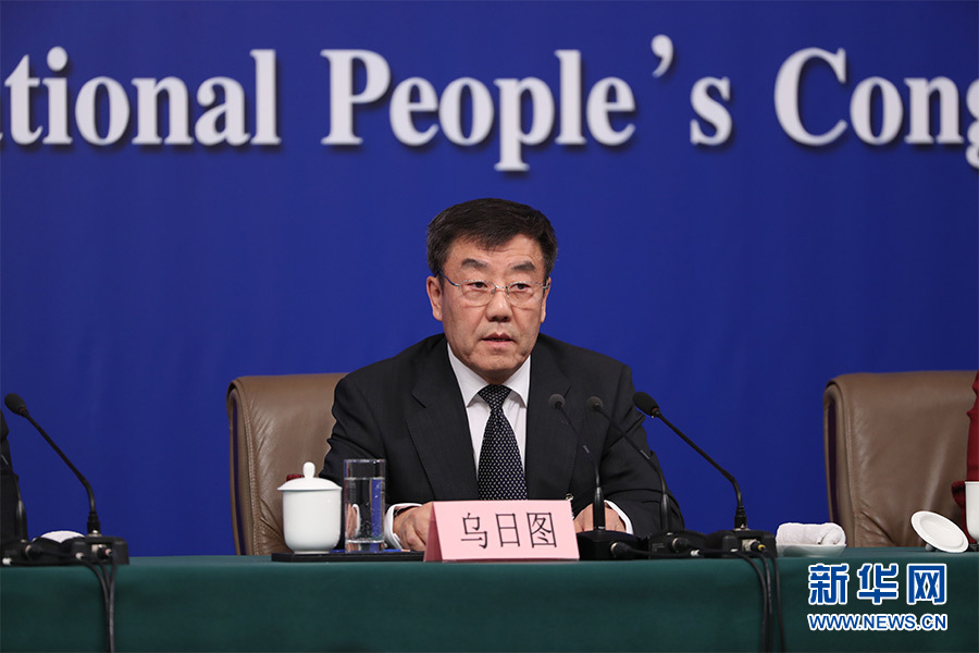 圖為財(cái)經(jīng)委副主任委員烏日?qǐng)D回答記者提問。新華網(wǎng)/中國政府網(wǎng) 翟子赫 攝