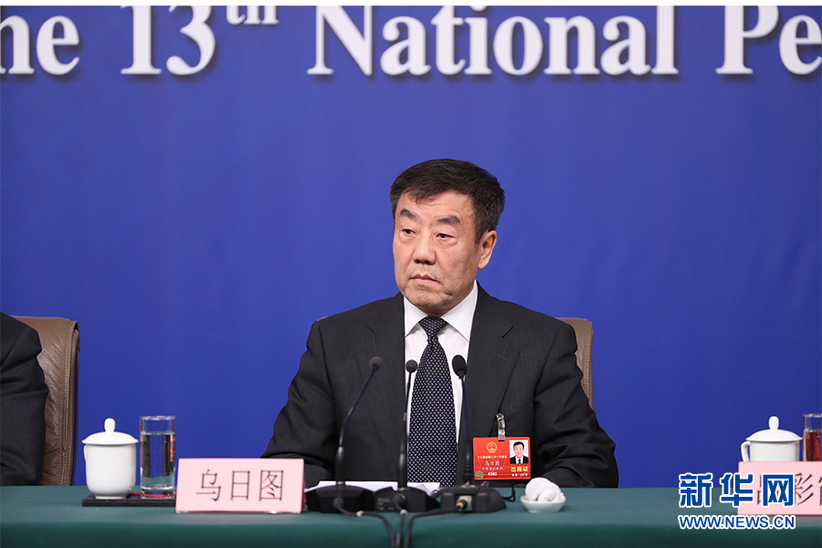 3月12日,十三屆全國(guó)人大一次會(huì)議新聞中心在梅地亞中心多功能廳舉行記者會(huì),邀請(qǐng)十二屆全國(guó)人大內(nèi)司委副主任委員王勝明、財(cái)經(jīng)委副主任委員烏日?qǐng)D、教科文衛(wèi)委副主任委員吳恒、環(huán)資委委員呂彩霞,全國(guó)人大常委會(huì)法工委副主任王超英、副主任許安標(biāo)就“人大立法工作”相關(guān)問(wèn)題回答中外記者提問(wèn)。圖為財(cái)經(jīng)委副主任委員烏日?qǐng)D回答記者提問(wèn)。新華網(wǎng)/中國(guó)政府網(wǎng) 翟子赫 攝