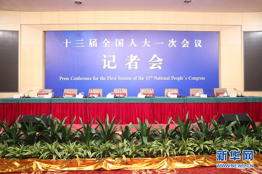 3月12日,十三屆全國人大一次會議新聞中心在梅地亞中心多功能廳舉行記者會,邀請十二屆全國人大內(nèi)司委副主任委員王勝明、財經(jīng)委副主任委員烏日圖、教科文衛(wèi)委副主任委員吳恒、環(huán)資委委員呂彩霞,全國人大常委會法工委副主任王超英、副主任許安標(biāo)就“人大立法工作”相關(guān)問題回答中外記者提問。圖為記者會開始前。新華網(wǎng)/中國政府網(wǎng) 翟子赫 攝