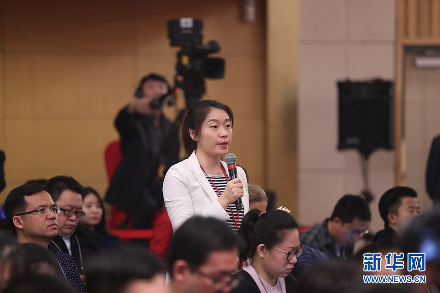 3月12日,十三屆全國人大一次會議新聞中心在梅地亞中心多功能廳舉行記者會,邀請十二屆全國人大內(nèi)司委副主任委員王勝明、財經(jīng)委副主任委員烏日圖、教科文衛(wèi)委副主任委員吳恒、環(huán)資委委員呂彩霞,全國人大常委會法工委副主任王超英、副主任許安標就“人大立法工作”相關問題回答中外記者提問。圖為中央電視臺記者提問。新華網(wǎng)/中國政府網(wǎng) 翟子赫 攝